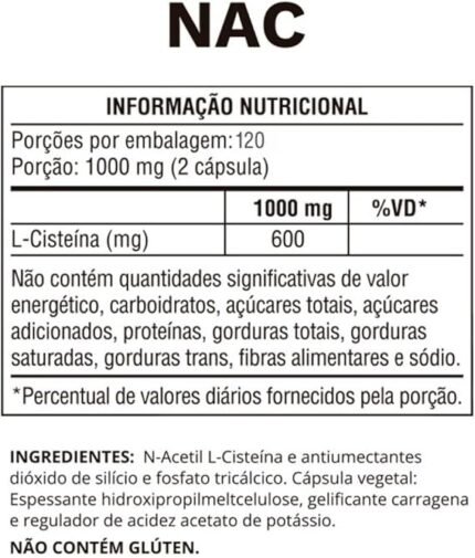 NAC 600mg Ocean Drop 120 Cápsulas Antioxidante Precursor da Glutationa Vegano Sem Glúten Saúde do Fígado Imunidade Detox Alta Potência Suplemento