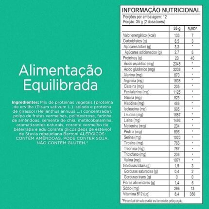 PROTEÍNA 100% VEGETAL – Fórmula à base de ervilha e arroz, ideal para quem busca alternativa sem lactose PERFIL COMPLETO