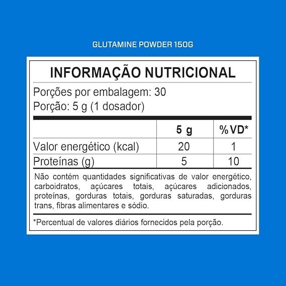- 5G De Glutamina Por Dose. Matéria-prima importada e 100% pura