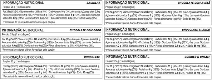 | Ingredientes | *VERIFICAR A PÁGINA DE DETALHES DE CADA UM DOS SABORES |