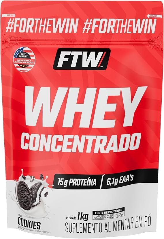 FTW Whey Concentrado com Proteína Concentrada WPC, Suplemento Alimentar em Pó com 15g de Proteína por Porção, Rico em Aminoácidos Essenciais, Sem Glúten – Refil 1KG (Cookies)