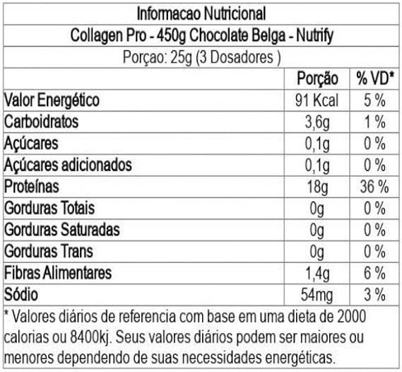 Nutrify Collagen Pro – Colágeno Hidrolisado com Proteína – Sem Glúten, Sem Açúcar e Sem Lactose – Sabor Chocolate Belga – 450g