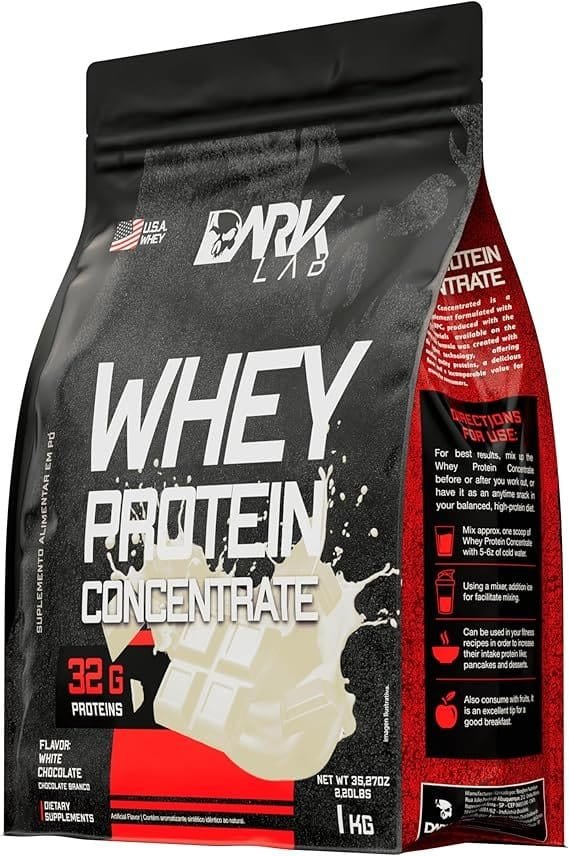 Whey Protein Concentrado Dark Lab, 1kg, Chocolate Branco, Ganho de Massa Muscular